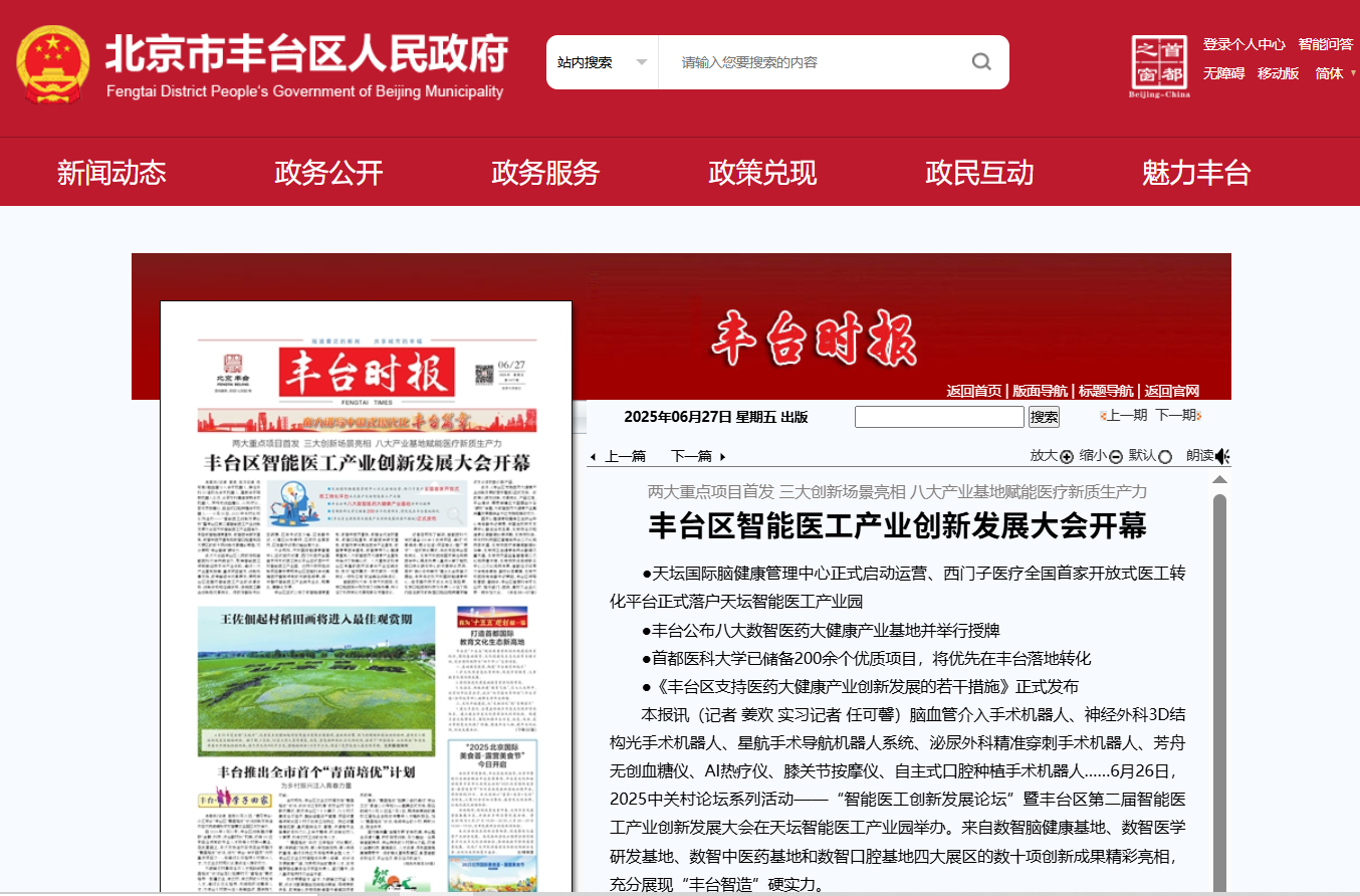 6月26日,由豐臺區(qū)人民政府、首都醫(yī)科大學(xué)舉辦的中關(guān)村論壇系列活動“智能醫(yī)工創(chuàng)新發(fā)展論壇”暨豐臺區(qū)第二屆智能醫(yī)工產(chǎn)業(yè)創(chuàng)新發(fā)展大會在北京順利舉辦,此次大會聚焦智能醫(yī)工領(lǐng)域前沿技術(shù)與產(chǎn)業(yè)實(shí)踐,通過八大產(chǎn)業(yè)基地授牌、重點(diǎn)項(xiàng)目首發(fā)、創(chuàng)新場景發(fā)布、政策解讀與成果展示,展現(xiàn)豐臺區(qū)在推動智能醫(yī)工產(chǎn)業(yè)的資源優(yōu)勢、創(chuàng)新優(yōu)勢和空間優(yōu)勢,促進(jìn)醫(yī)工融合創(chuàng)新和成果轉(zhuǎn)化。北京市政府副秘書長王穎捷,區(qū)委書記王少峰,區(qū)委副書記、代理區(qū)長張艷林,區(qū)政協(xié)主席李嵐,區(qū)委副書記蔣達(dá)峰,首席科學(xué)家毛山宏等領(lǐng)導(dǎo)出席會議。